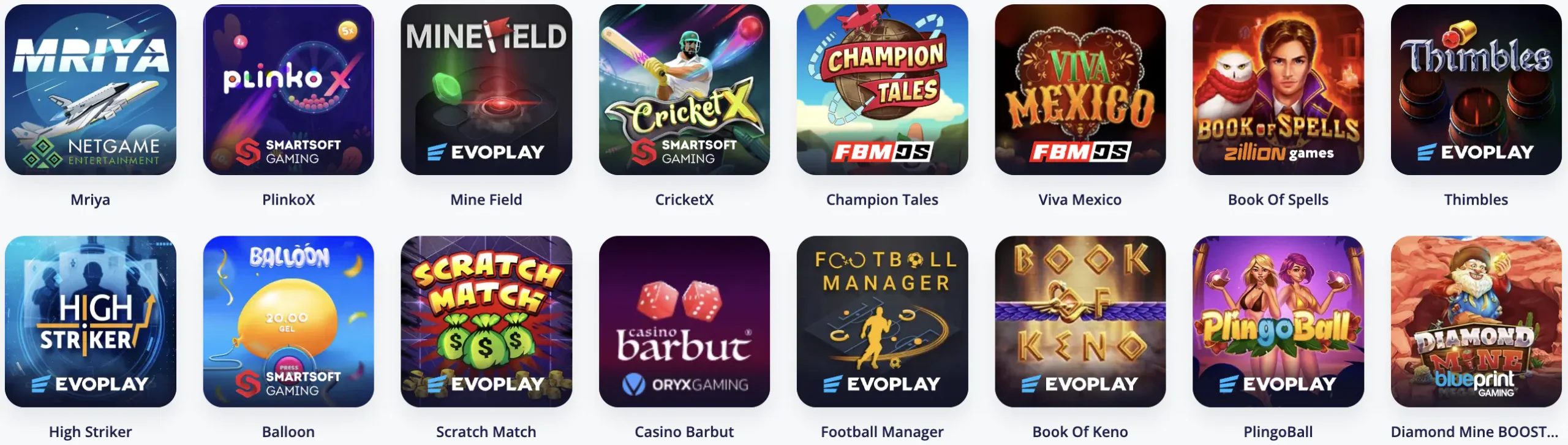 Insta-Spiele: Insta-Spiele richten sich an Spieler, die kurze und spannende Spielrunden bevorzugen. Diese Spiele zeichnen sich durch schnelle Abläufe und sofortige Ergebnisse aus. Typische Formate sind Crash-, Mines- oder Sofortgewinnspiele.