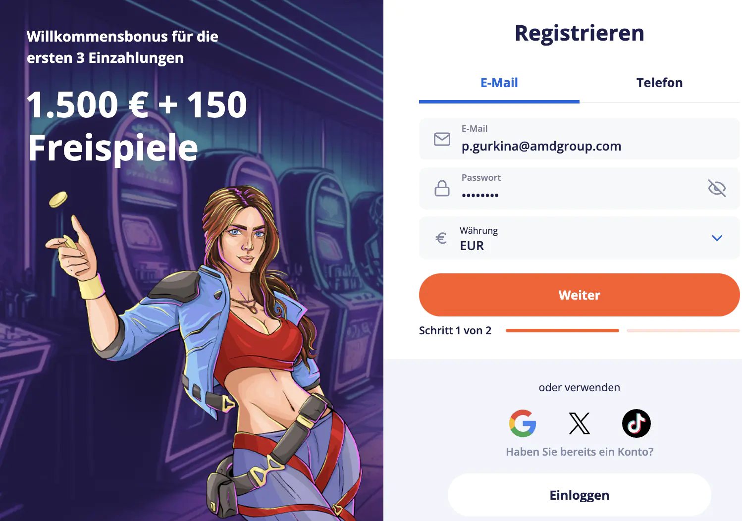 - Währung auswählen: Für Spieler aus Deutschland wählen wir in der Regel Euro als Kontowährung.